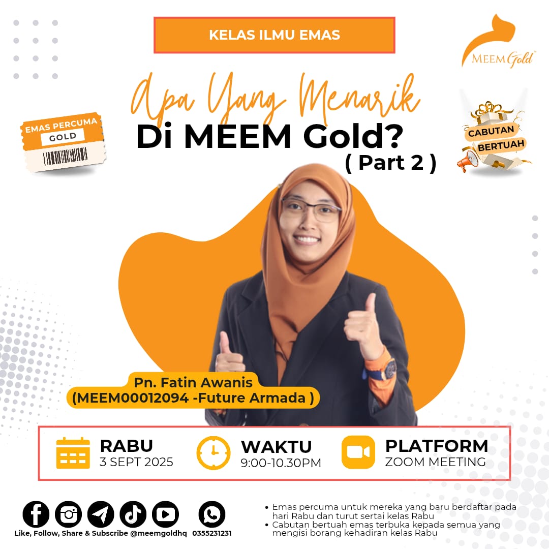Di MEEM Gold, anda bukan sekadar membeli emas anda juga dapat bimbingan Kelas Malam Rabu secara PERCUMA.