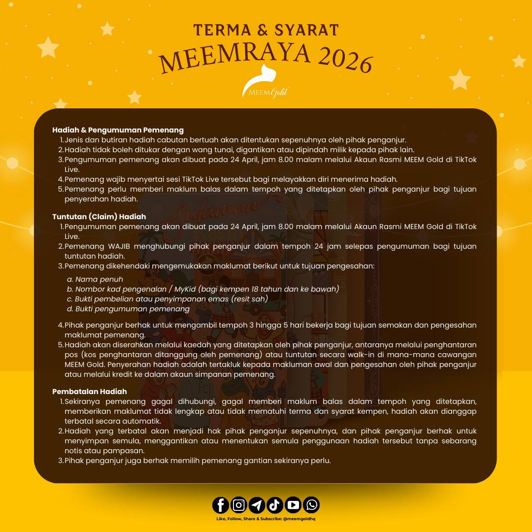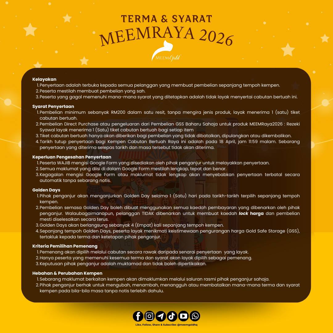 Syawal bukan sekadar perayaan, tetapi peluang untuk membawa pulang emas dan hadiah eksklusif bersama MEEM Gold.