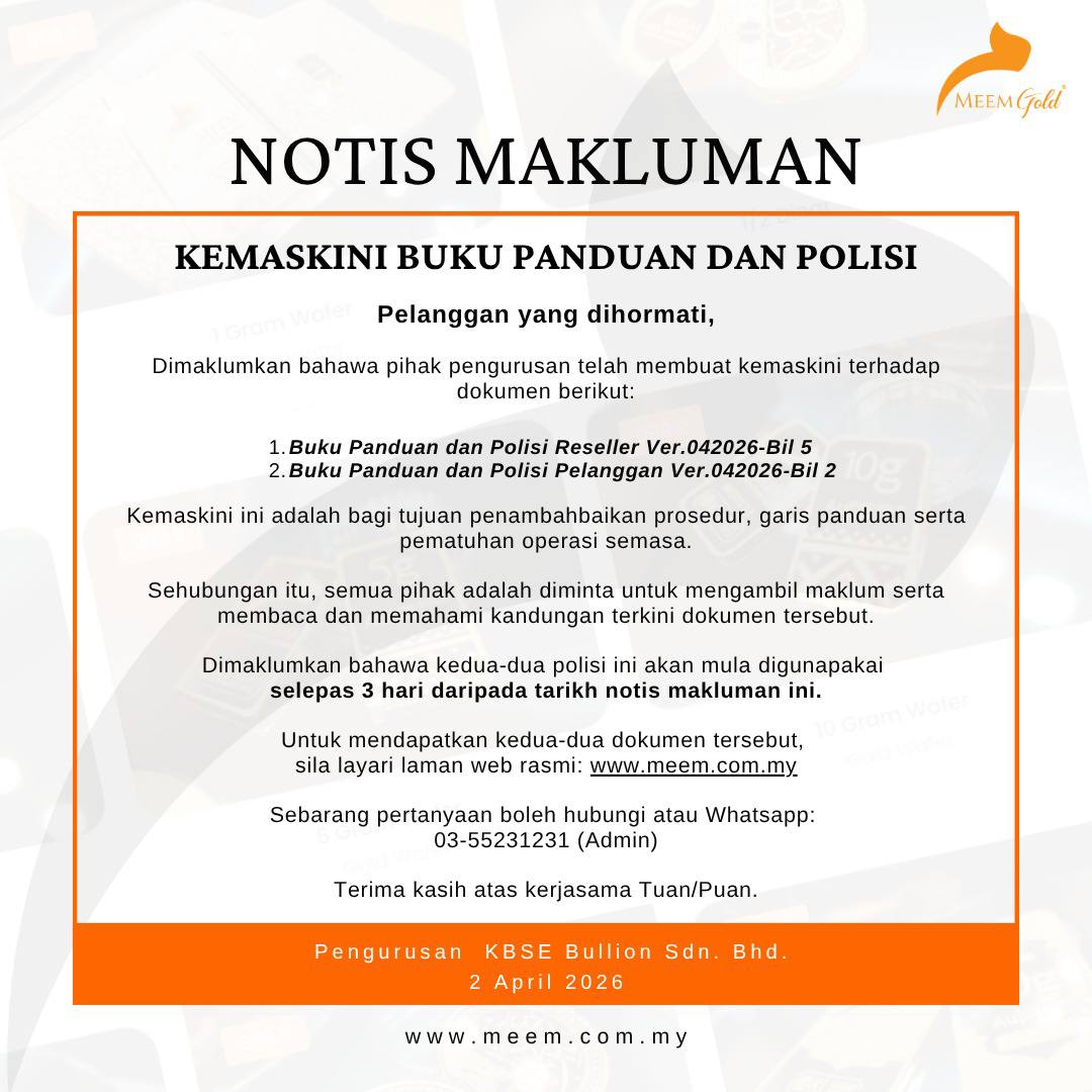 Makluman kepada semua pelanggan MEEM Gold,