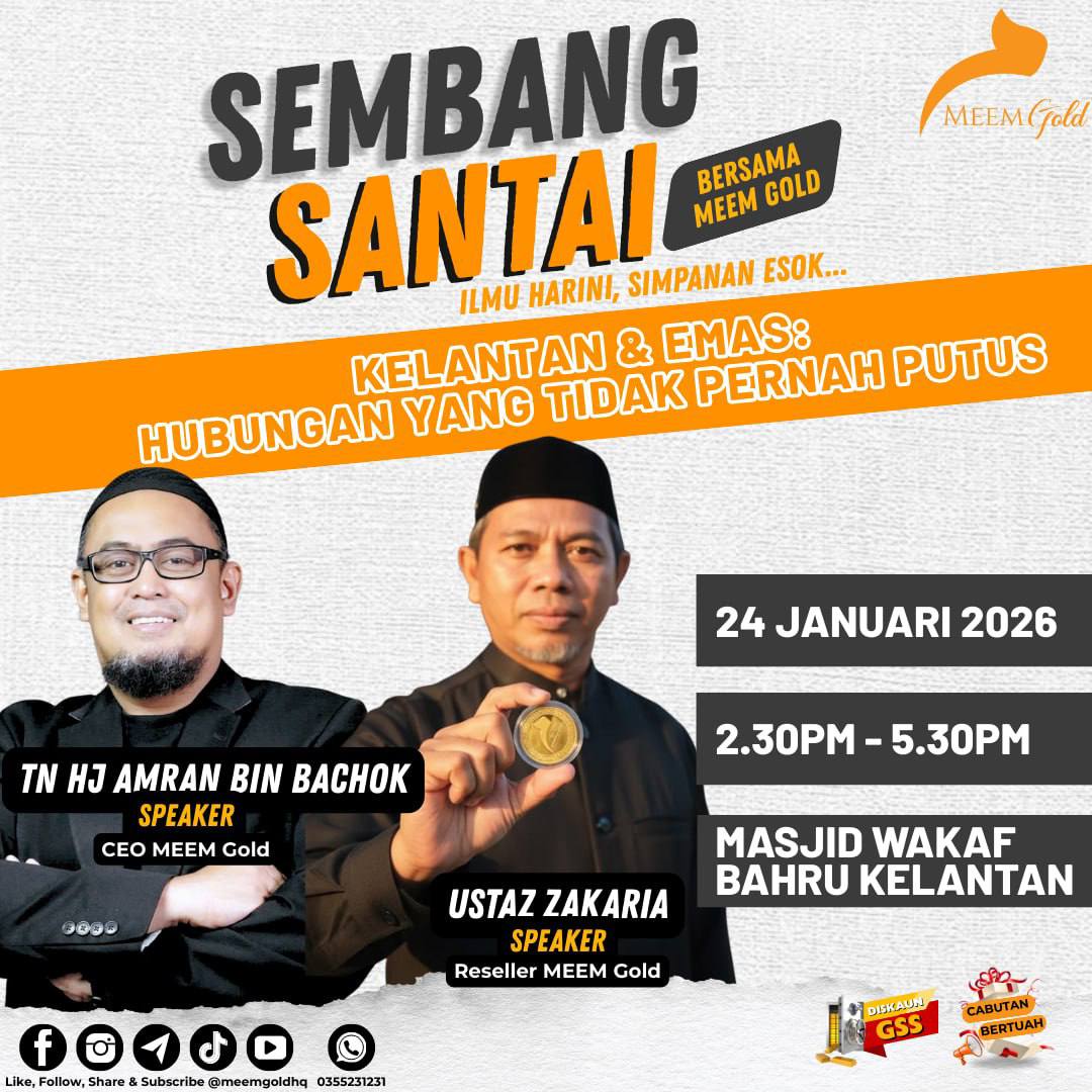 Nak tahu rahsia hubungan unik Kelantan & emas yang tak pernah putus? Ayuh hadir ke Sembang Santai MEEM Gold bersama: