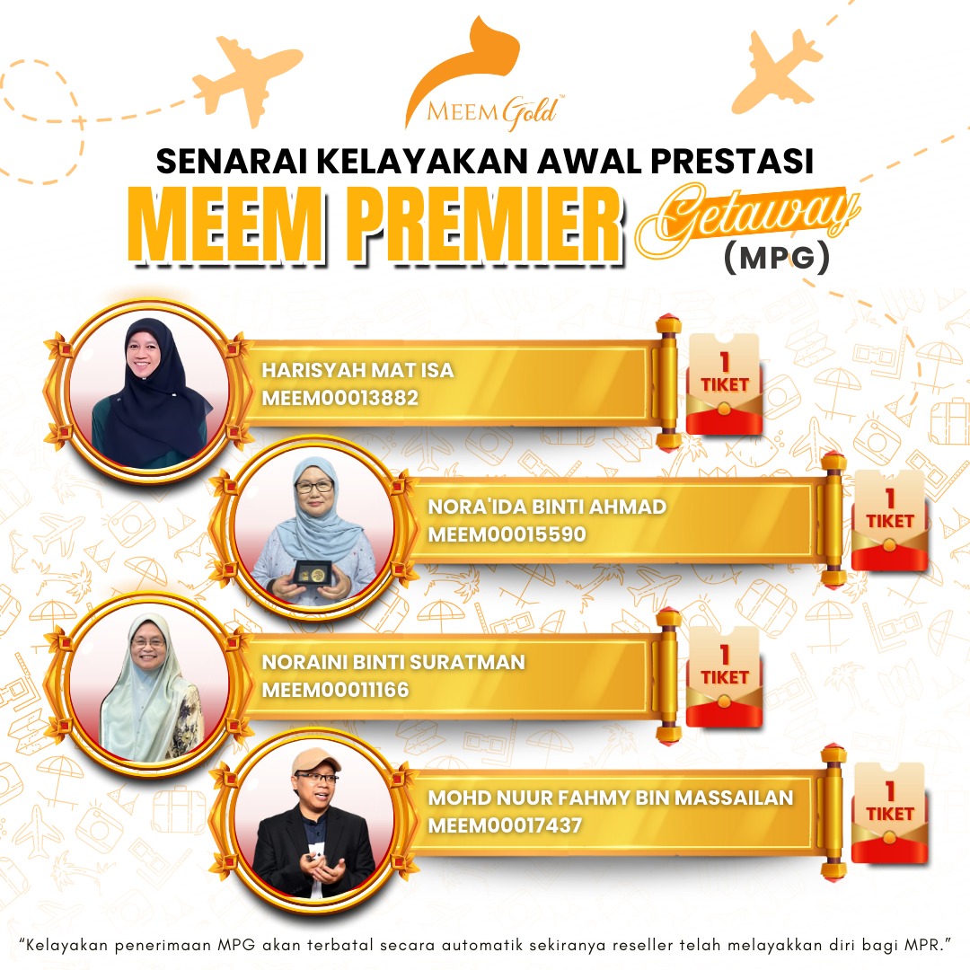 Tahniah kepada reseller yang telah mencapai kelayakan awal prestasi MEEM Premier Getaway (MPG).