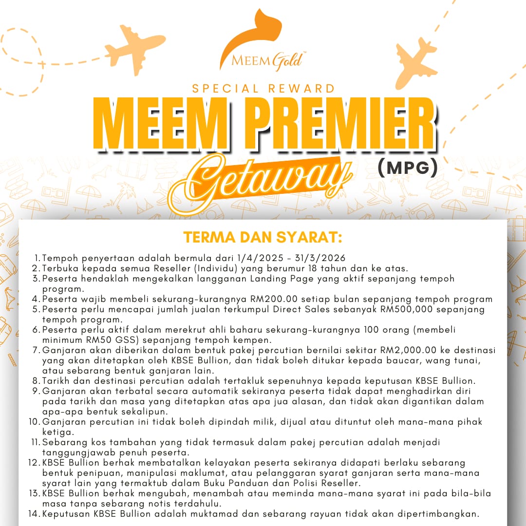 Teruskan momentum, kekalkan konsistensi dan manfaatkan baki tempoh yang ada. Peluang ini masih terbuka. Siapa seterusnya yang akan tersenarai sebagai penerima ganjaran MEEM Premier Getaway?